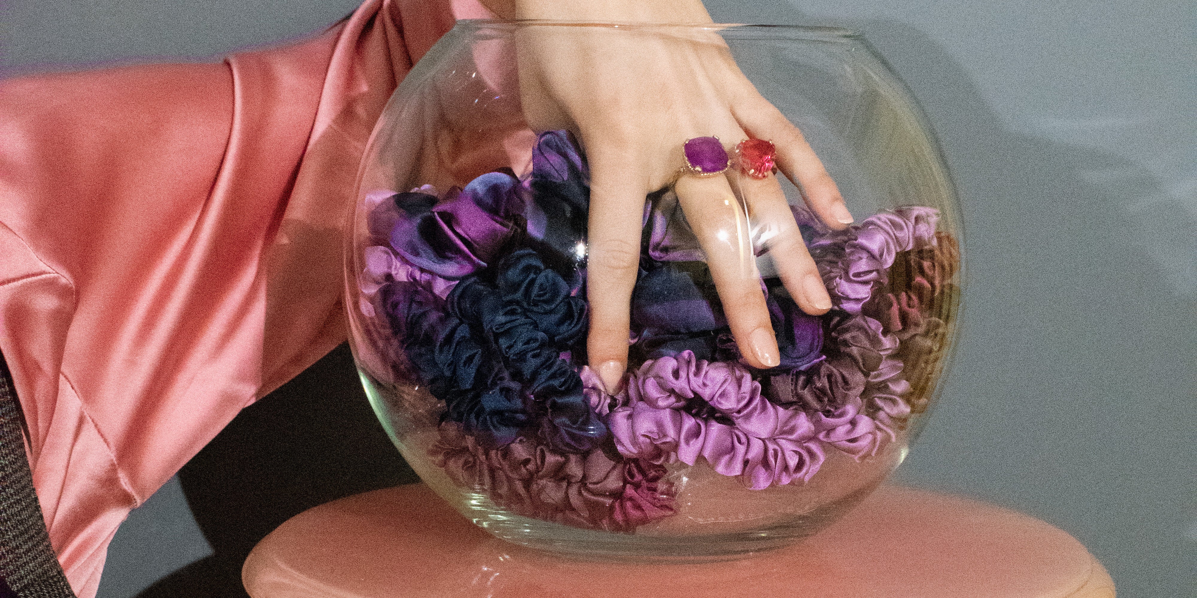 Το σετ 4 περιλαμβάνει x4 skinny μεταξωτά scrunchies